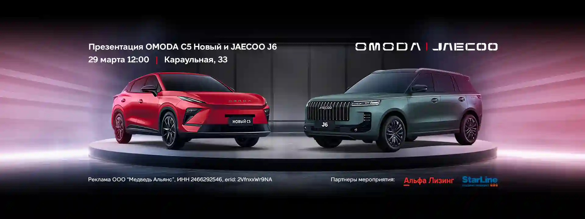 Две новые модели 2026 года, которые не оставят никого равнодушным – OMODA C5 Новый и JAECOO J6. Приглашаем вас на презентацию в МЕДВЕДЬ АЛЬЯНС 29 марта.