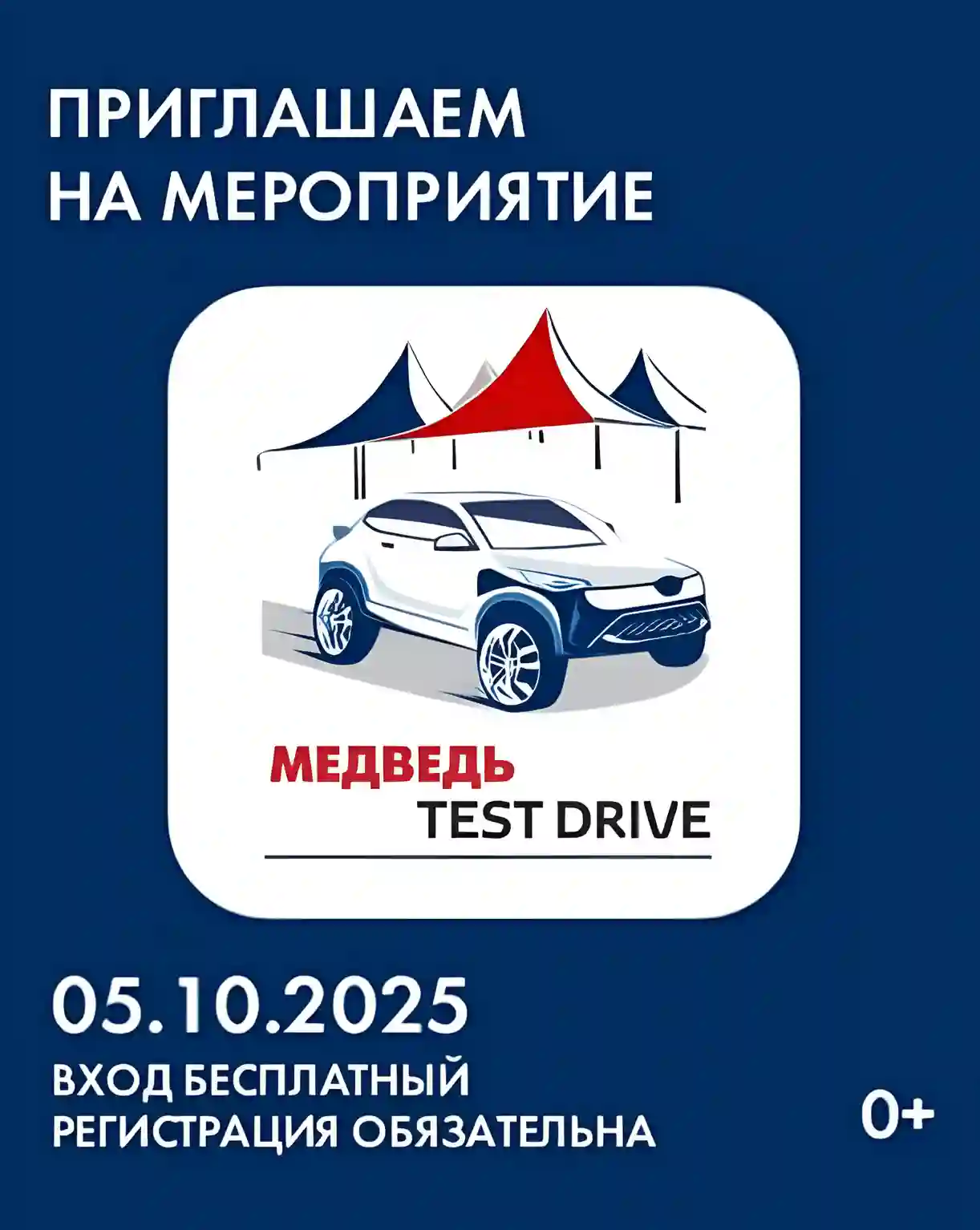 Медведь TEST DRIVE — это шанс сделать выходной по-настоящему особенным! Торопитесь, регистрация уже открыта — количество мест ограничено!