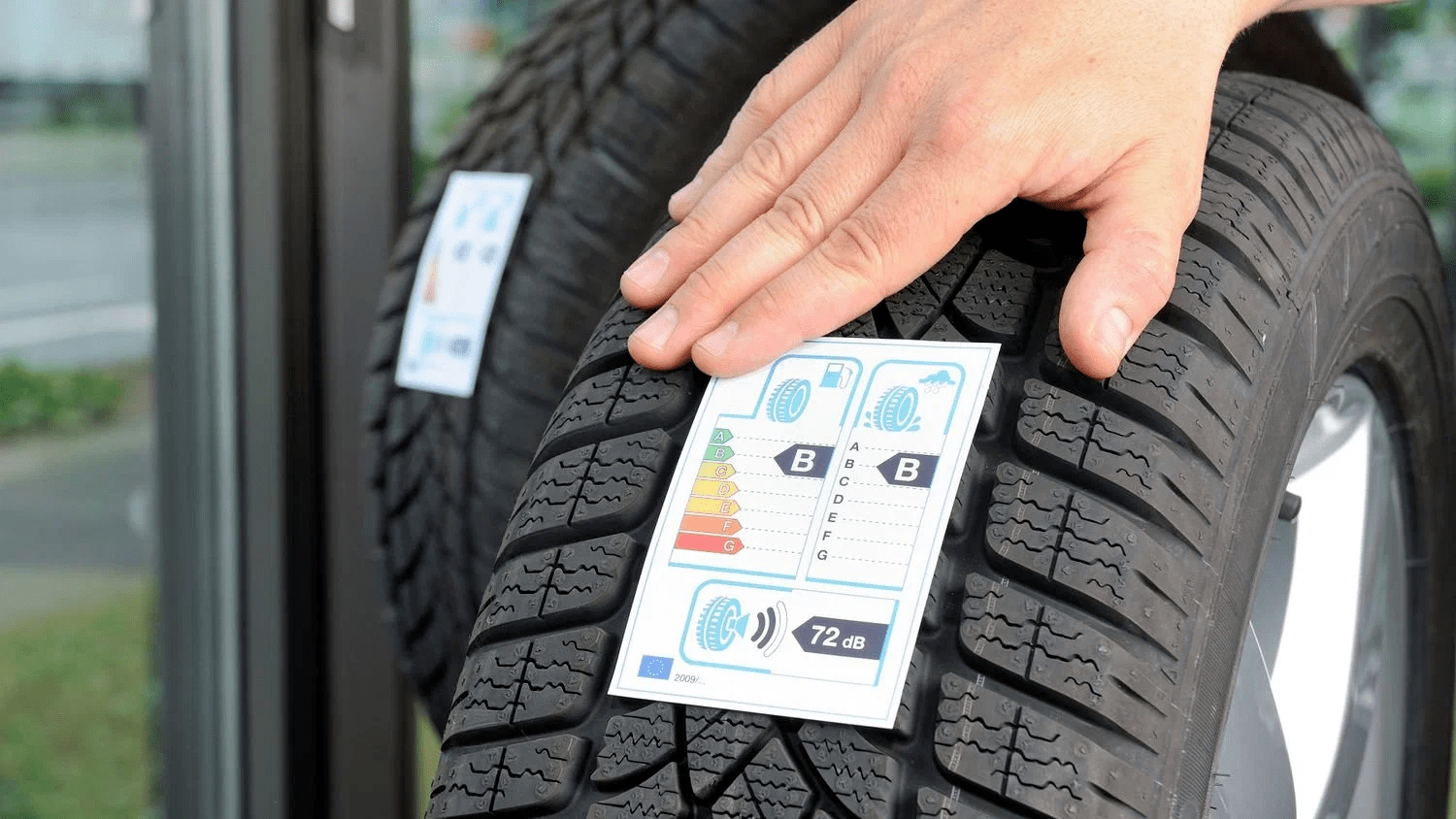 В соответствии с международными требованиями, на протектор новой шины должен быть наклеен стикер. На нём схематично (стрелками и латинскими буквами) обозначается, к какому классу относится покрышка по таким параметрам, как топливная экономичность, шумность и устойчивость на мокрой дороге (водоотведение).