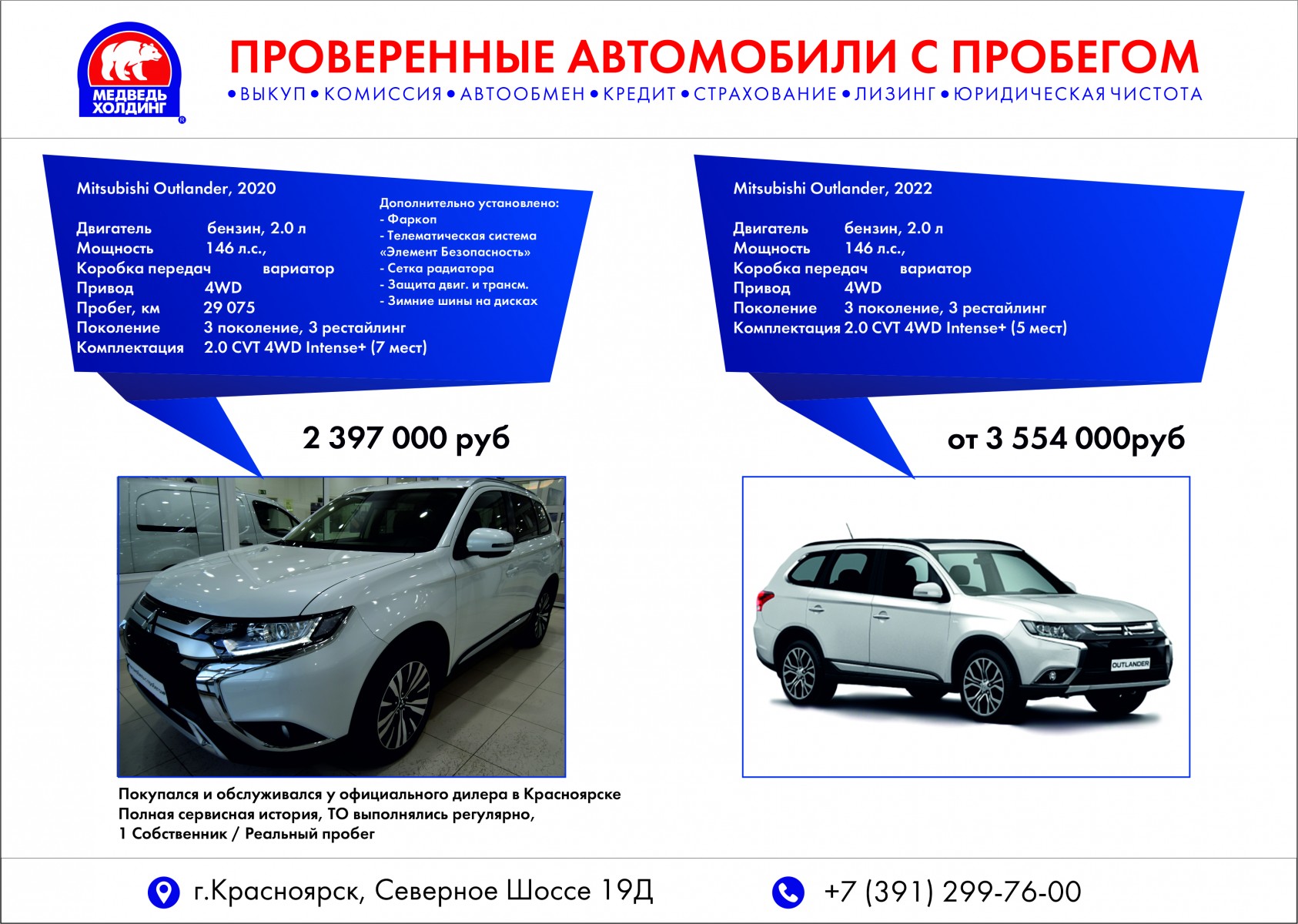 Например, сейчас вы можете приобрести 7 — местный Mitsubishi Outlander дешевле нового 5 -местного!